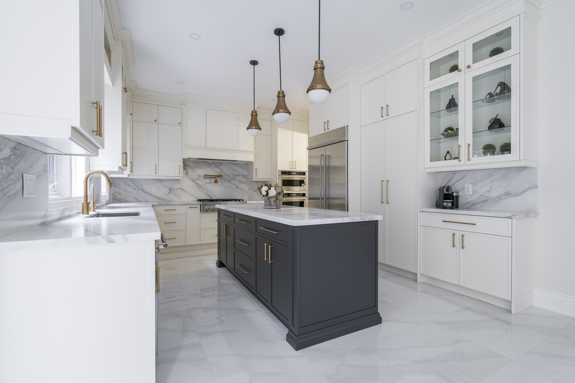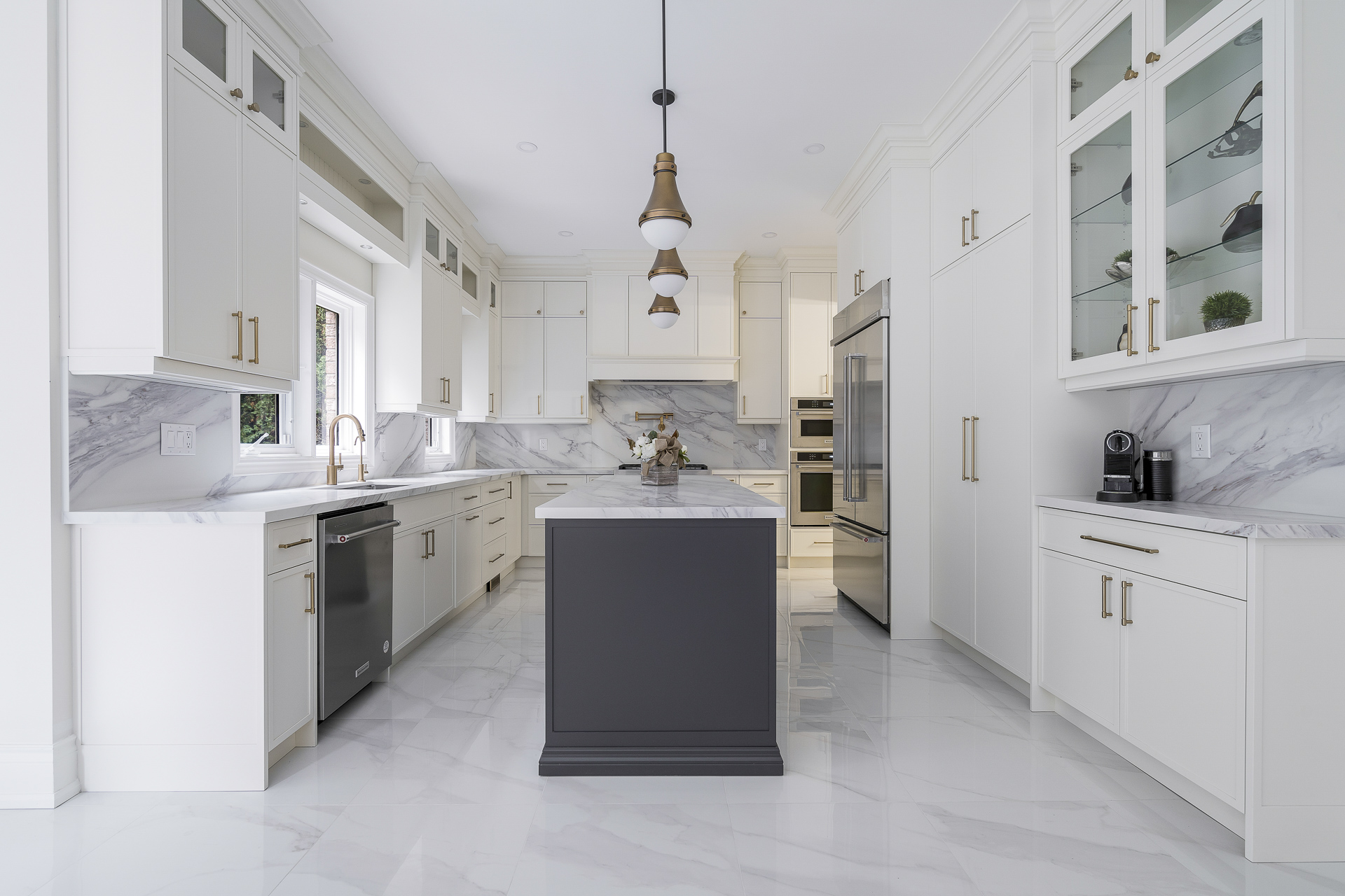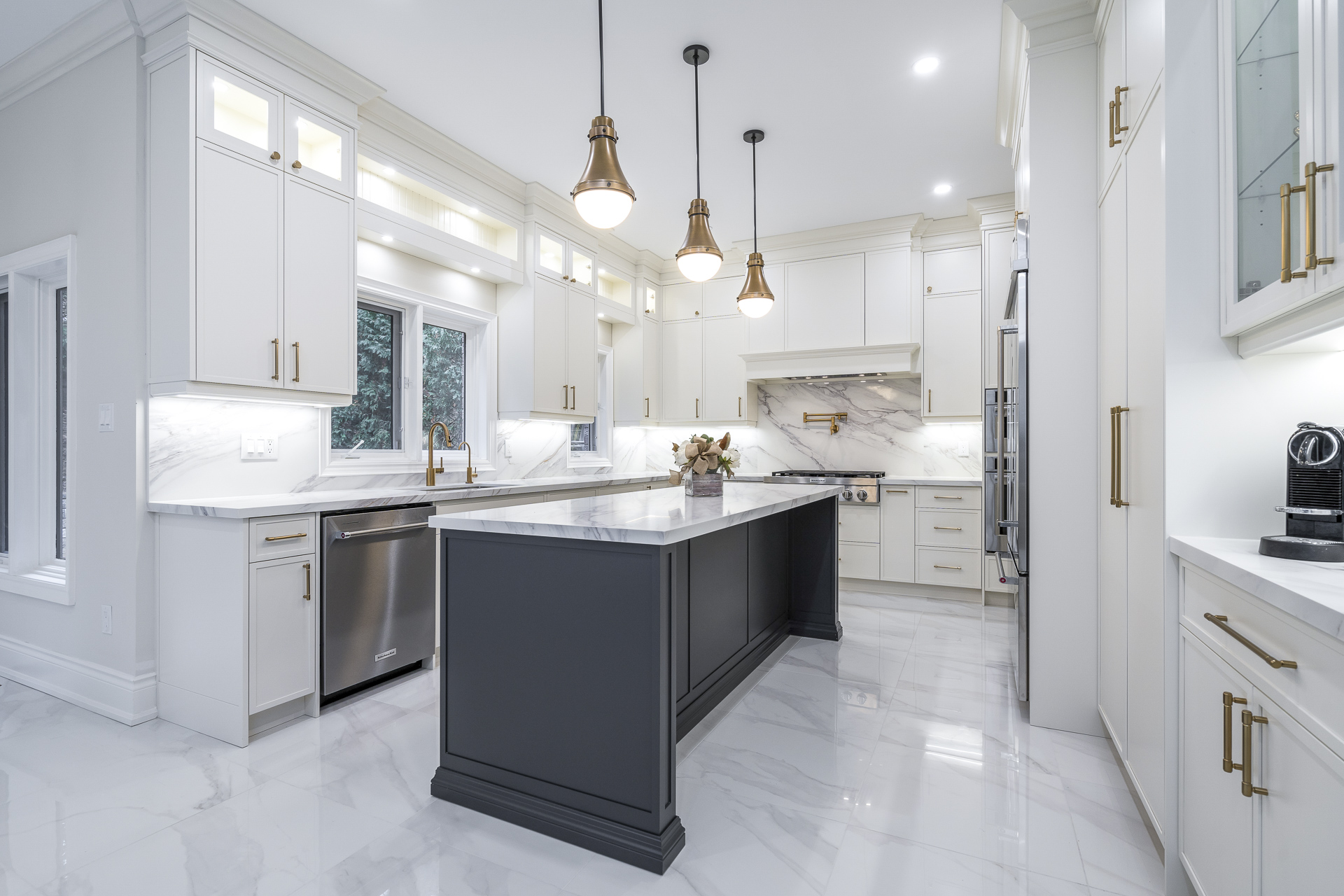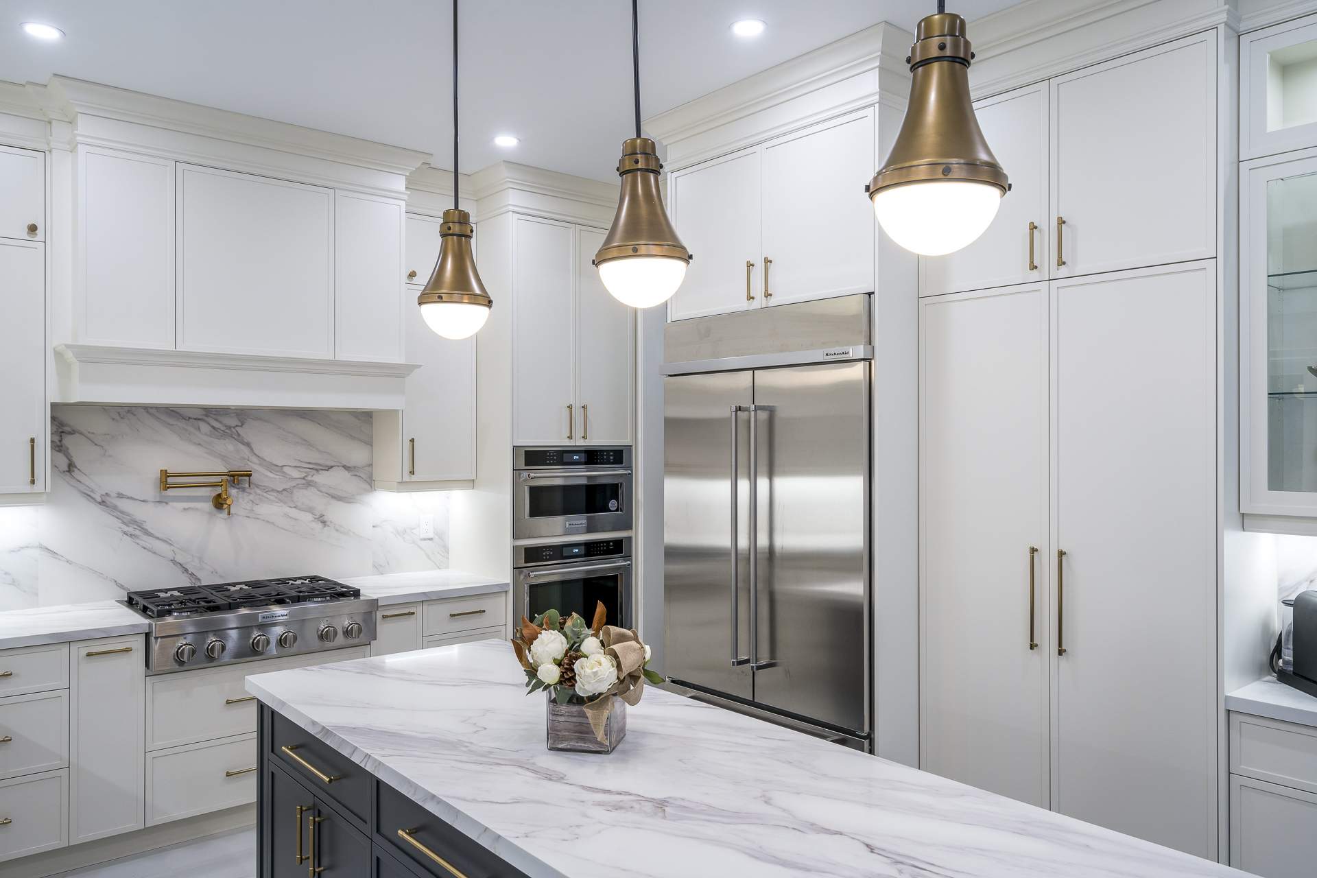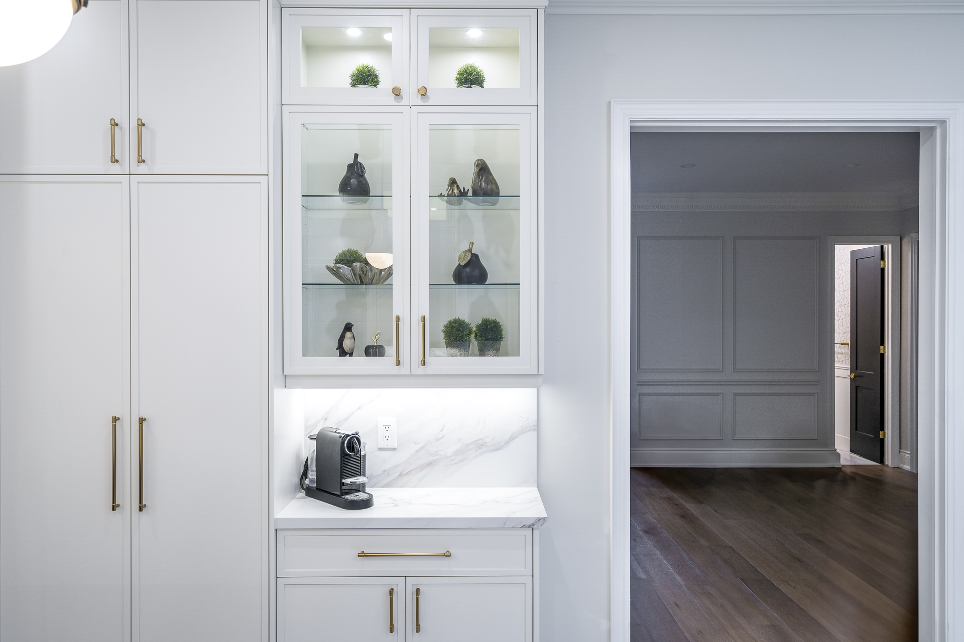 This project revitalized the entire first floor with a new kitchen, upgraded bathrooms, and fresh flooring. The staircase and railing were refinished, featuring elegant pickets and risers. New paint, custom trim, and striking statement lighting ensured a cohesive, stylish environment. Phase 2: Furnishing is coming soon!