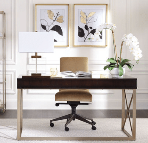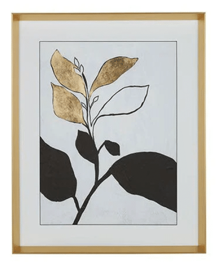 Gold foil adds opulence to black-and-white painted florals that appear to be plucked from an artist’s sketchbook. Though gold leaf petals bring a formal luster to any space, the hand-drawn looks of this artwork set can lean casual or modern.